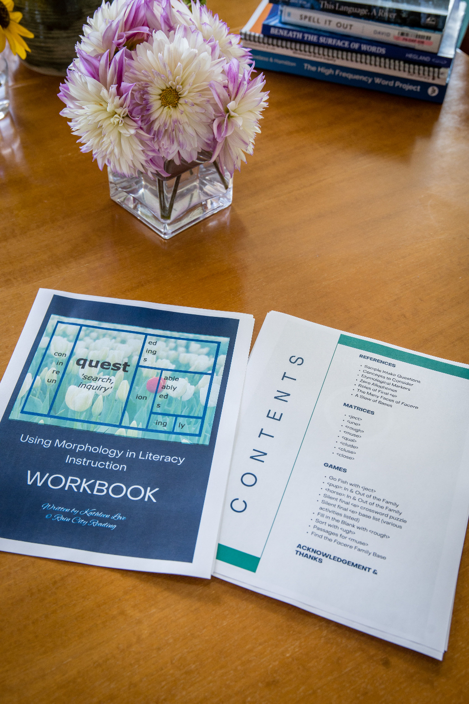 An extensive workbook filled with resources and ready-to-use activities. Want to deep dive into etymological markers, zero allophones or a long list of bound bases that pop up all the time in English? You're covered! Looking for more matrices and word sums, plus activities you can print and play right away with your students? Done! (This is just scratching the surface. The workbook is over 40 pages!)